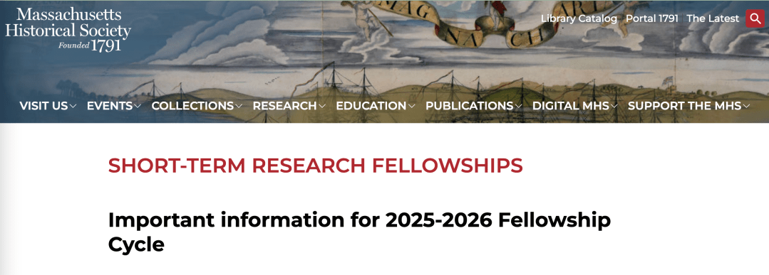 Fellowship Opportunity with the Massachusetts Historical Society, deadline 1/15/25