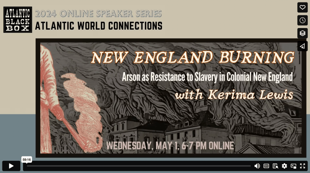Arson as Resistance to Slavery in Colonial New England, 1650 – 1775, with Dr. Kerima Lewis